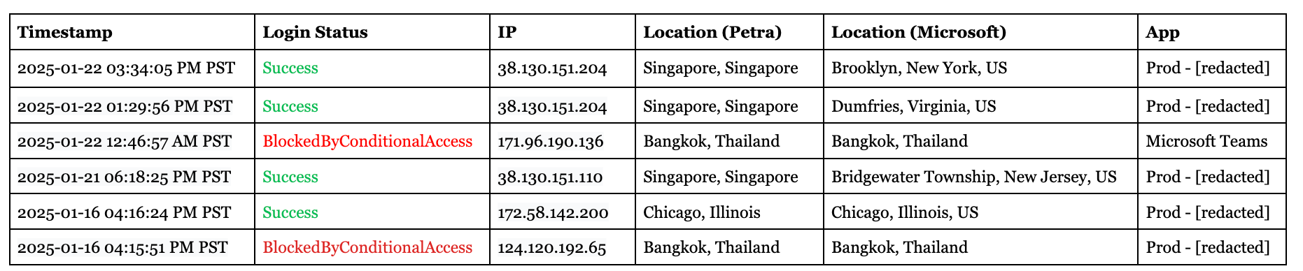 Any Microsoft admin without a third-party monitoring solution would have never even known that logins had happened from outside the US.