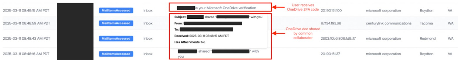 The email with the OneDrive 2FA code was invaluable context that allowed us to detect the attacker before they could do any damage.